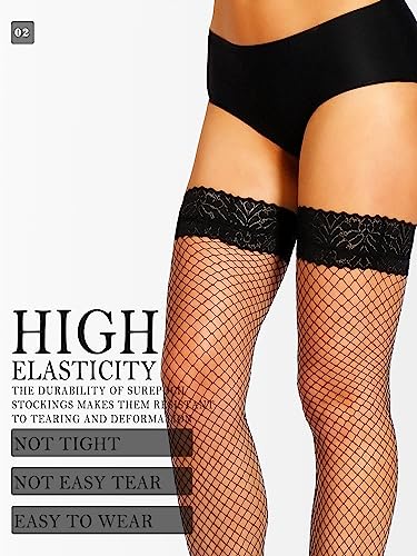 Lace Top Fishnet Thigh High Stockings Silicone Top Stay Up Tights for Women