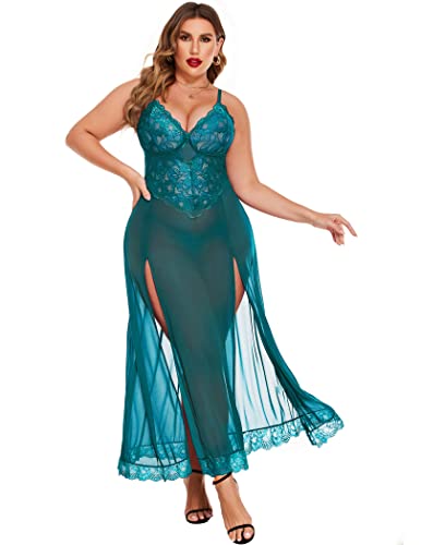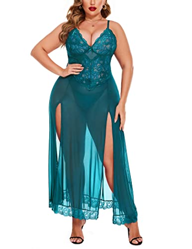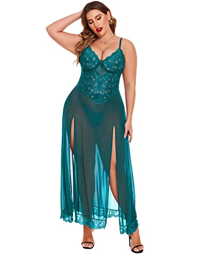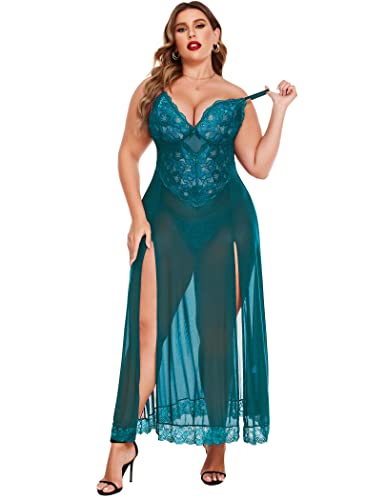 Avidlove Plus Size Lingerie For Women Babydoll Sexy Mesh Maxi Nightdress Strappy Exotic Sleepwear Side Slits
