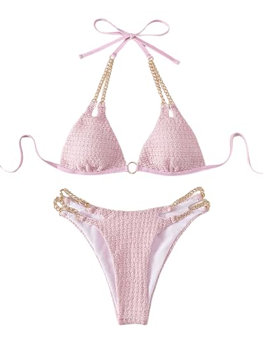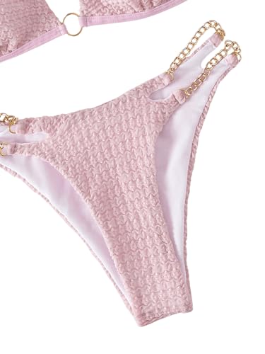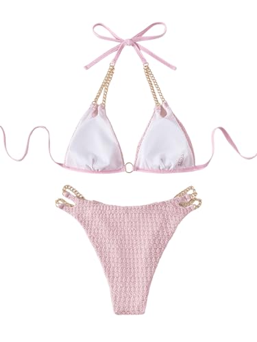 Floerns Women’s Micro Triangle Bikini Set Cut Out Chain Two Piece Bathing Suit