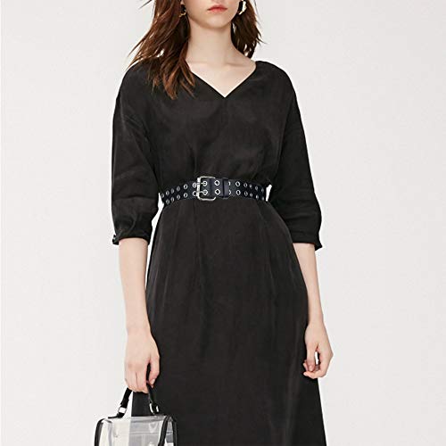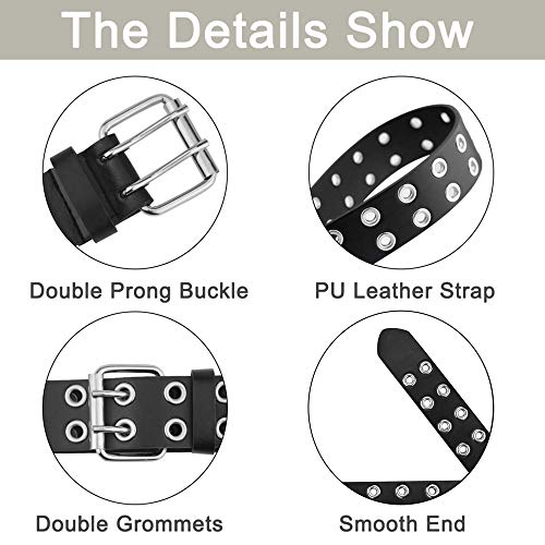 Grommet Leather Belts for Women, Black Belt Women Men with Double Studded Holes
